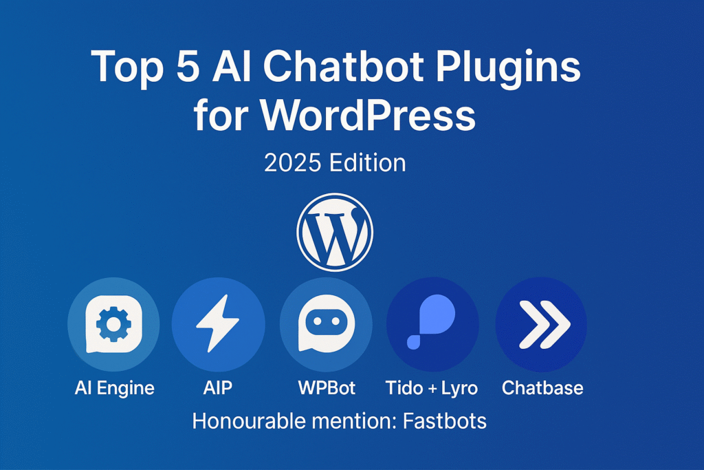 Sources: WPBot pricing pages (Starter and Pro tiers) WPBot Pro, AI Engine pricing (Starter $59/yr) Meow Apps, AIP pricing (1-site $95.88/yr) docs.aipower.org, Fastbots pricing (Essential billed annually at $290) FastBots, Chatbase pricing (Hobby $40/mo) AI Agents for Customer Service, typical Tidio Lyro starter pricing for ~100 conversations (public write-ups; confirm in-app for your region) Big Sur AI. OpenAI model pricing for our usage calc: gpt-4.1 family. OpenAI.